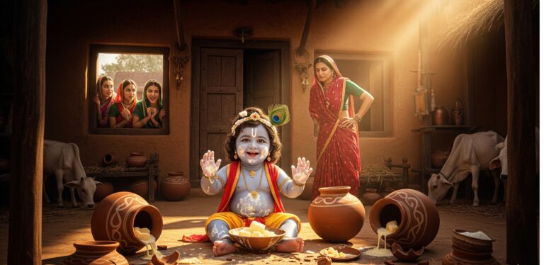 Thus, Krishna as Makhan Chor taught the world a deeper secret — the Lord steals not our butter, but our hearts, filling them with divine sweetness.